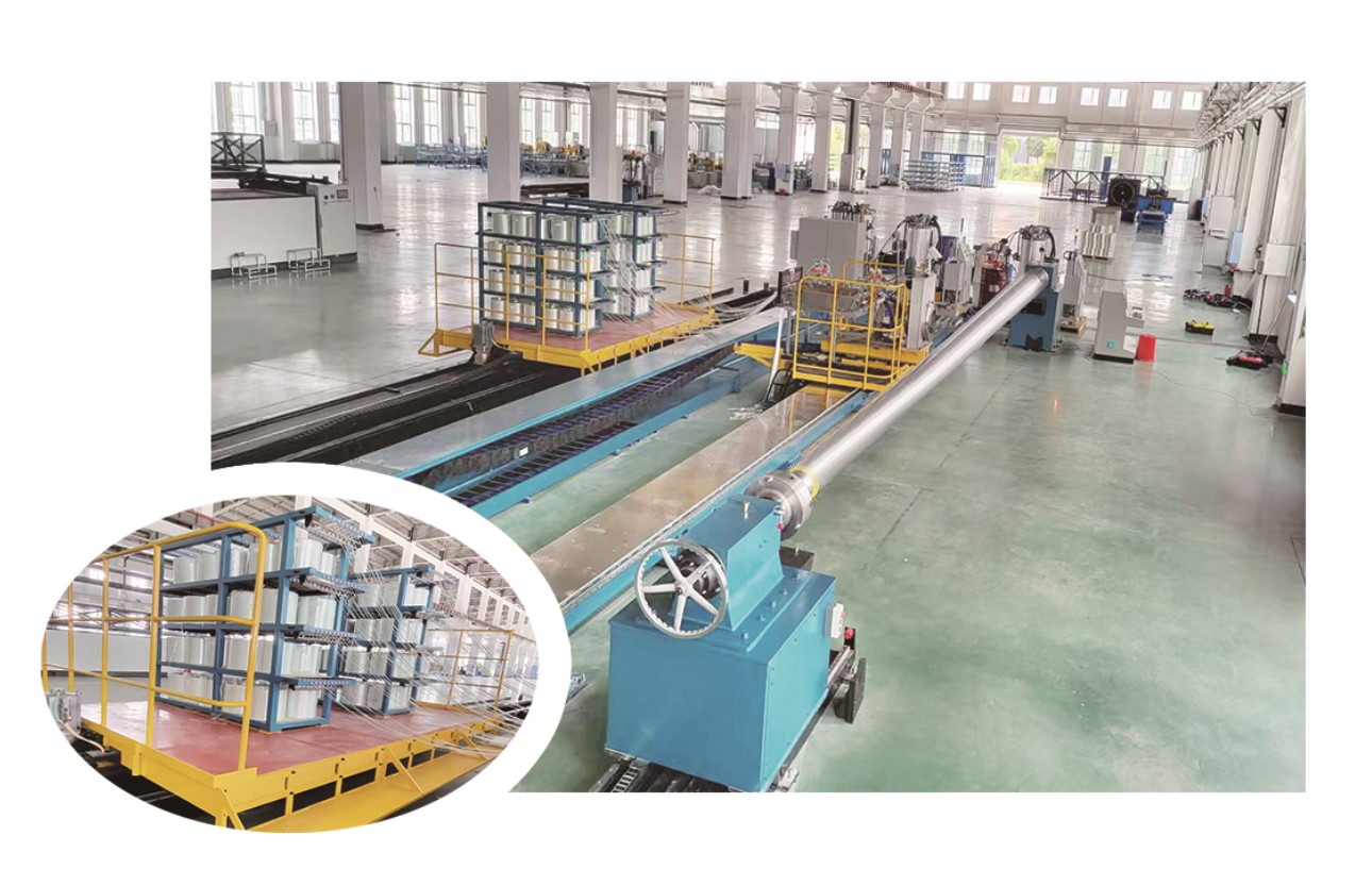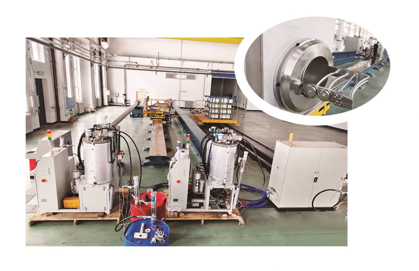 妙設計了雙向弧形吐紗系統,解決了聚氨酯復合材料桿塔纏繞角度小、用紗量大、超長度以及樹脂固化快等關鍵技術難題。